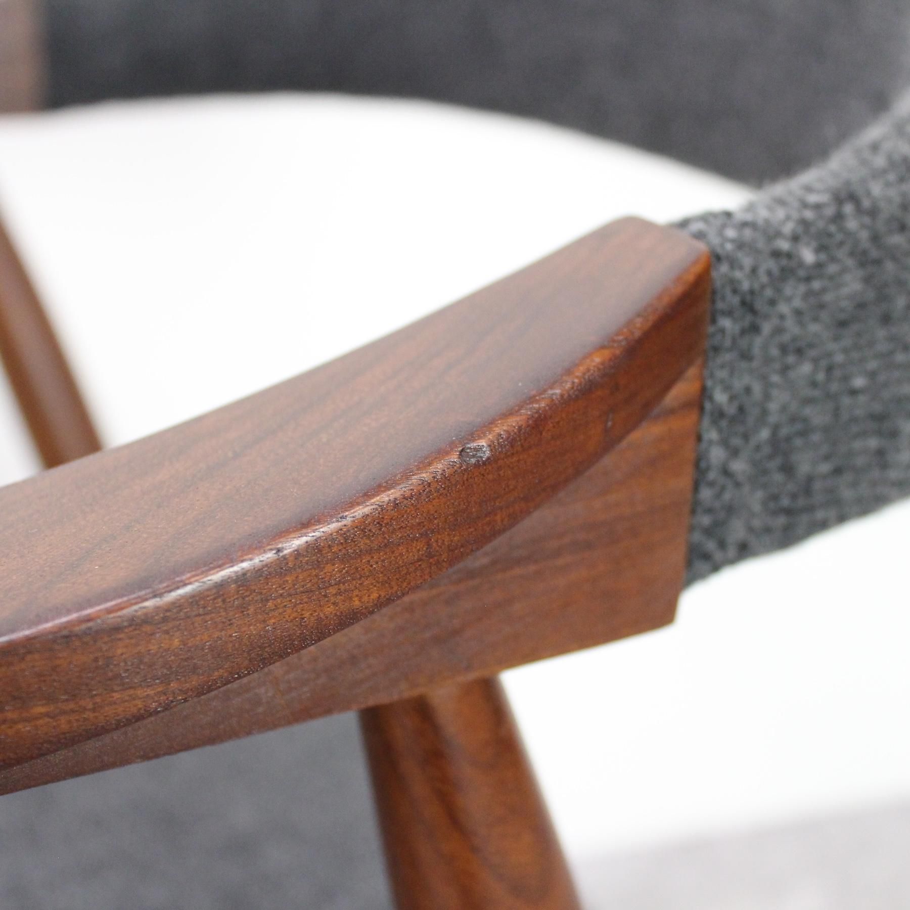 スラっと伸びた脚部のフレームがきれいなアームチェア。